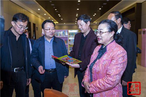市文广新局党组书记、局长朱建军向领导介绍图书