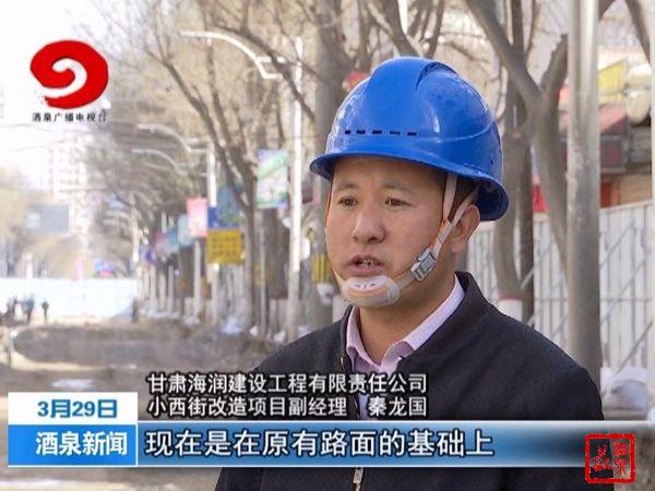 甘肃海润建设工程有限责任公司 小西街改造项目副经理秦龙国介绍:“小西街现在是在原有路面的基础上下挖了近60公分,完了之后是回填30公分的沙砾垫层,然后是25公分的水泥稳定层,再就是8公分的沥青路面,两边就是路沿石,石材,完了就是人行道的铺砖。”