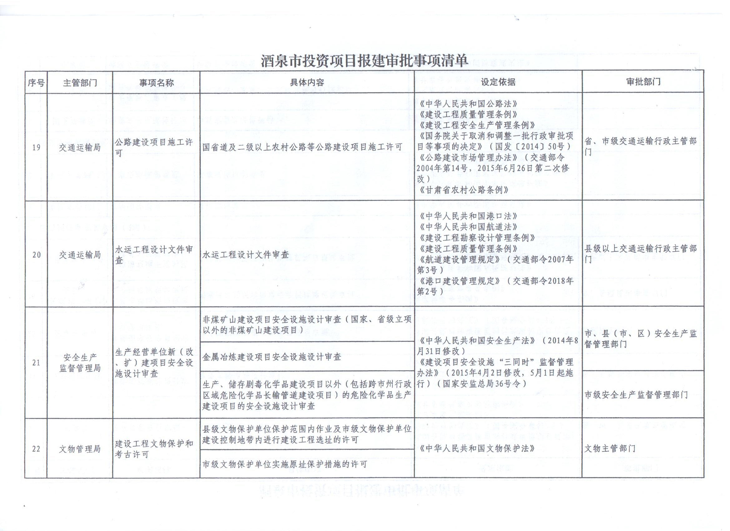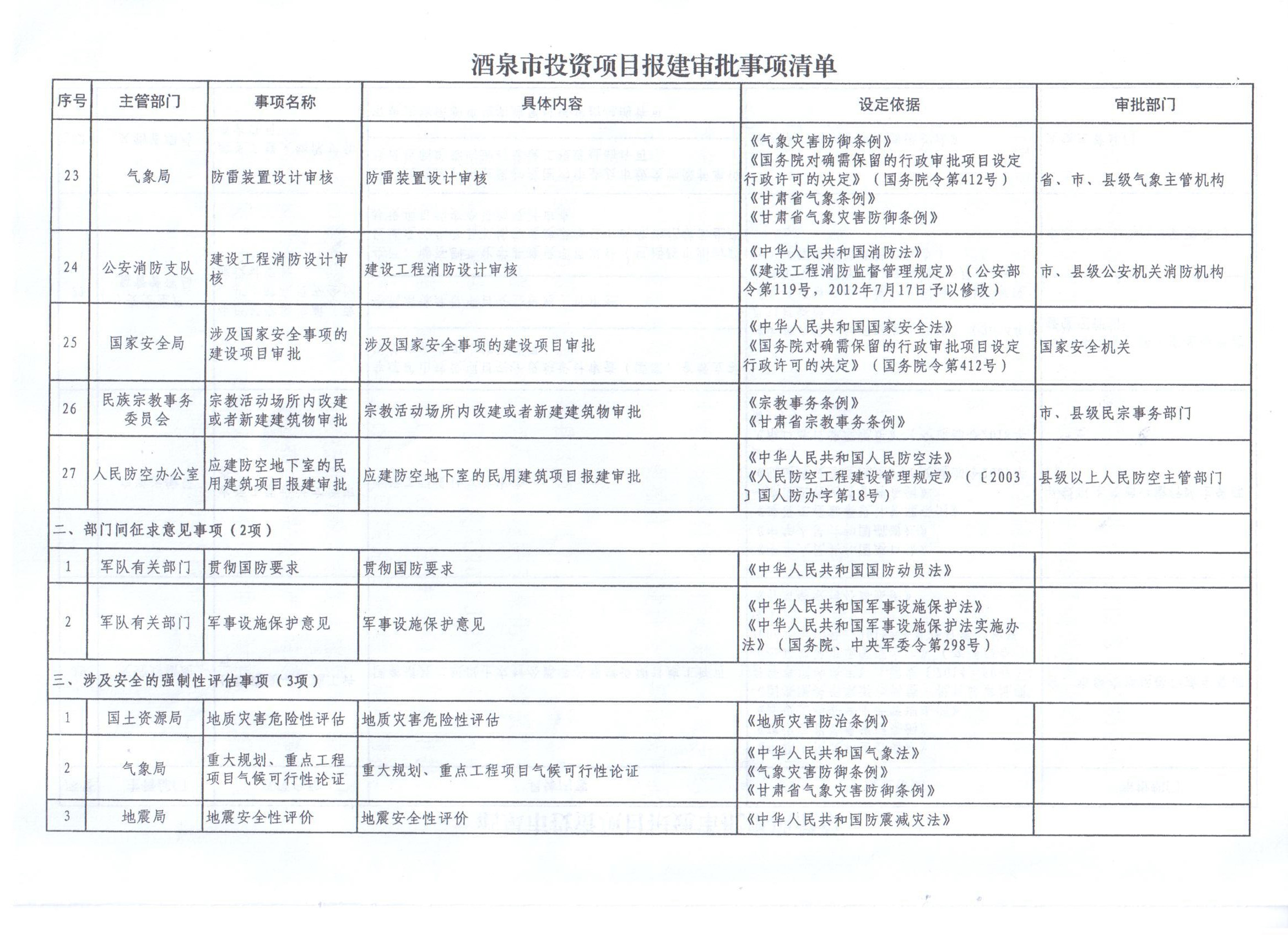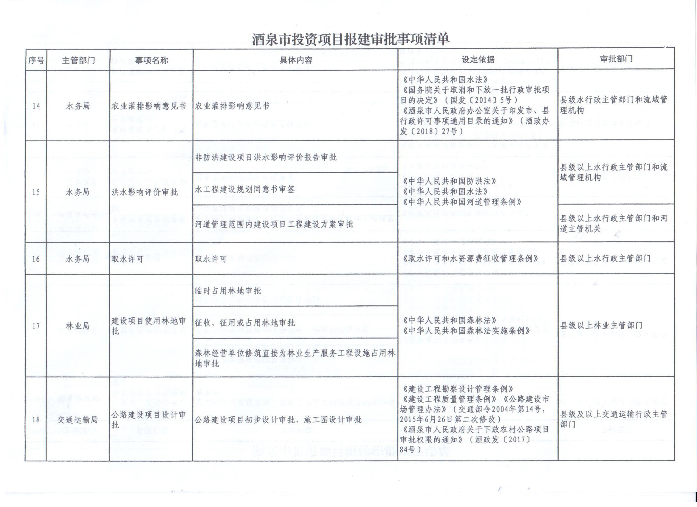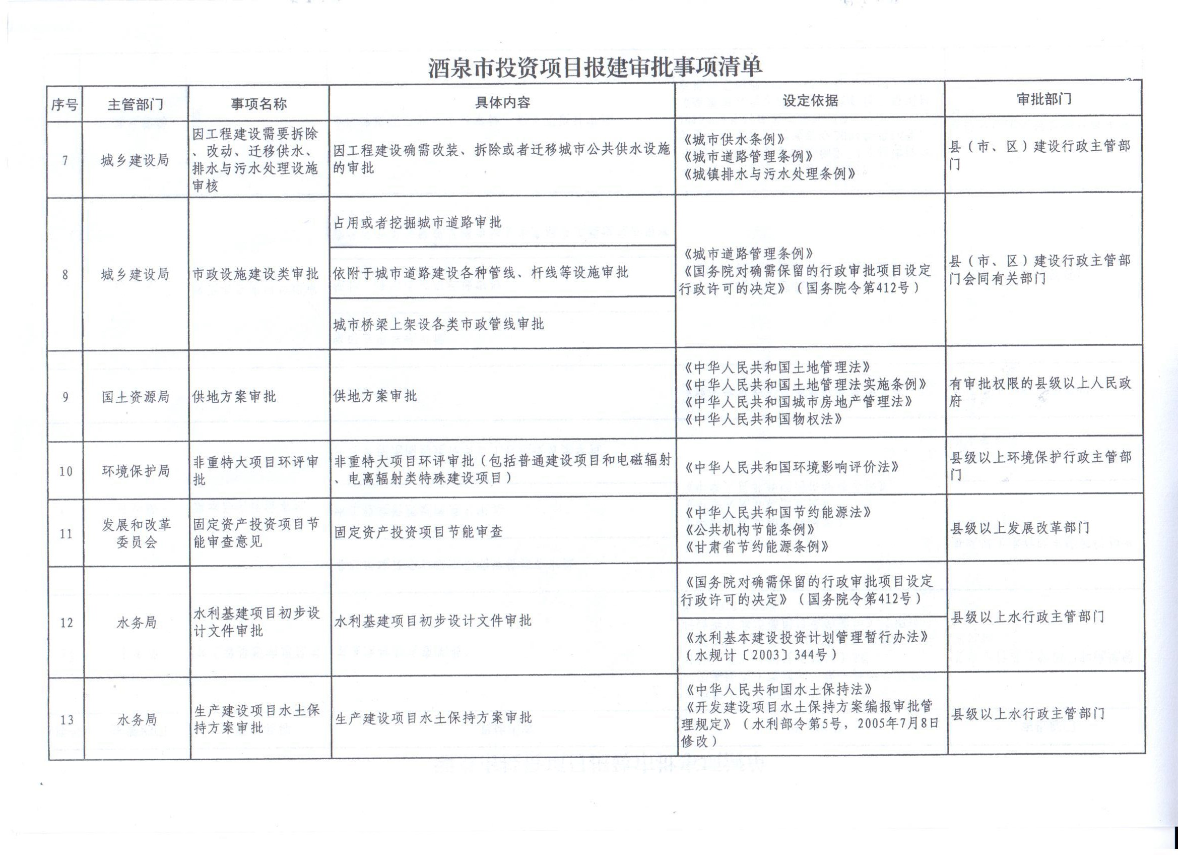 关于印发酒泉市投资项目报建审批事项清单的通知