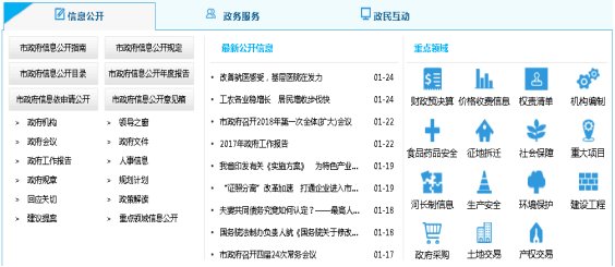 (三)多措并举,搭建公开平台。在继续办好政府公报、宣传展板,利用好广播电视、报纸等传统公开平台的基础上,积极利用政府网站、政务微博、微信等新型公开平台,拓宽政府信息公开的渠道,增强信息公开的深度。一是积极推进全市政府网站集约化建设,完成了市教育局网、财政局网、林业局网、公积金管理中心网集约整合工作,市水务局网正在整合中。清华大学公共管理学院发布的《2017年中国政府网站绩效评估报告》显示,在全省14个地州市政府网站中,有4家网站位列最高梯度——“良好”梯度,酒泉市名列其中。二是酒泉政务服务网日趋规范,实施了酒泉政务服务体系普查工作,报送普查数据6000多条,摸清了全市政务服务线上、线下资源状况。开展了甘肃政务服务网酒泉市子站便民服务事项、行政审批事项栏目存在问题整改工作,组织了甘肃政务服务网酒泉市子站后台管理维护工作技术培训,完成了甘肃政务服务网酒泉市子站的数据填报,实现了甘肃政务服务网酒泉市子站纳入全国政府网站常态化监管范围。三是采取政务微博、政务微信、手机客户端等新媒体,时时发布各类政策信息,增进公众对法规、规范性文件和政策措施的理解。